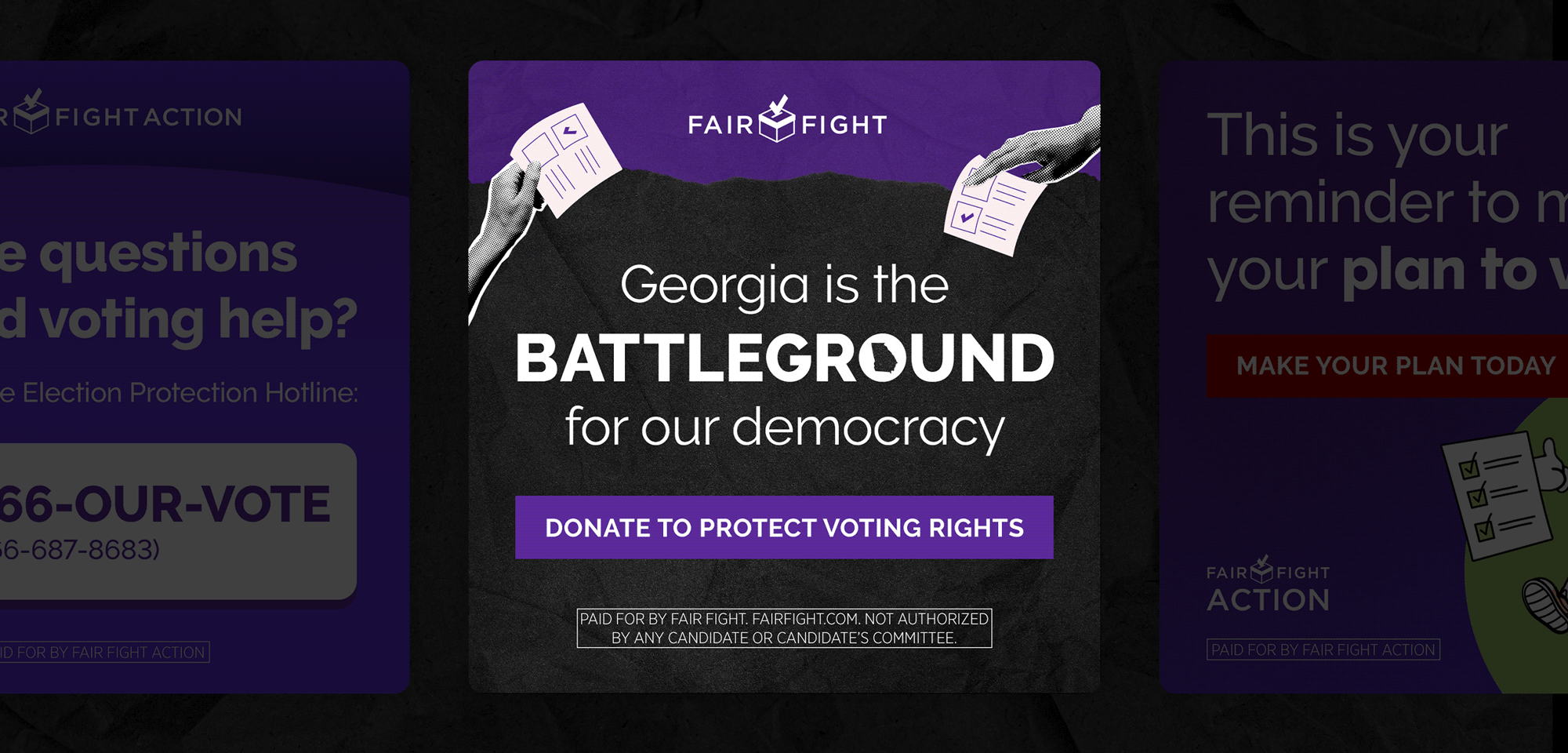 Fair Fight is an organization founded by Stacey Abrams in 2018 to fight voter suppression and protect voters’ rights in the state of Georgia and across the United States. Animated and static graphics to support Fair Fight’s paid media and email programs in 2024 and 2025.